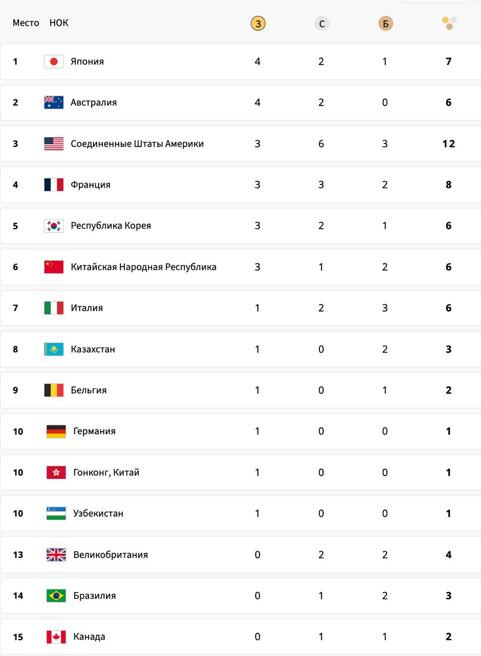 Расписание выступлений сборной Казахстана на Олимпиаде в Париже на 29 июля представили в Национальном олимпийском комитете (НОК), сообщает Belles.kz. 29 июля, на Олимпийских играх-2024 в Париже состоится третий соревновательный день. Казахстан будет представлен в нескольких видах спорта. Александра Ле поборется за свою вторую медаль в пулевой стрельбе. Также есть шансы на попадание в финальную часть соревнований в дзюдо, фехтовании и стрельбе из лука. Вид спорта: Фехтование на сабле, женщины. 1/32 финала. Кто: Айгерис Сарыбай. Начало: 12.00. Вид спорта: Пулевая стрельба из пневматического пистолета, 10 метров. Смешанные команды, квалификация. Кто: Никита Чирюкин, Ирина Юнусметова. Начало: 12.15. Вид спорта: Академическая гребля. Полуфиналы E/F. Кто: Владислав Яковлев. Начало: 12.30. Вид спорта: Пулевая стрельба. Пневматическая винтовка, 10 метров, женщины. Финал. Кто: Александра Ле. Начало: 12.30. Вид спорта: Дзюдо, до 73 килограммов (мужчины). Предварительные раунды, финал. Кто: Данияр Шамшаев. Начало: 13.00 (предварительные раунды), 19.00 (финальный блок). Вид спорта: Стрельба из лука, мужчины (командные соревнования). 1/8 финала. Кто: Казахстан – Италия. Начало: 13.16. Вид спорта: Плавание, 100 метров на спине (женщины). Квалификация, полуфиналы. Кто: Ксения Игнатова. Начало: 14.13 (квалификация), 23.57 (полуфиналы). Вид спорта: Большой теннис, парный разряд (мужчины). Первый раунд. Кто: Александр Бублик, Александр Недовесов. Начало: 15.00. Вид спорта: Бадминтон, мужчины. Квалификация. Кто: Дмитрий Панарин. Начало: 18.40. Вид спорта: Настольный теннис, мужчины. Второй раунд. Кто: Кирилл Герасименко. Начало: 23.00. Вид спорта: Бокс, до 63,5 килограмма (мужчины). 1/8 финала. Кто: Мухаммедсабыр Базарбайулы. Начало: 00.04. Вид спорта: Бокс, свыше килограммов (мужчины). 1/8 финала Кто: Камшыбек Кункабаев. Начало: 00.52.
