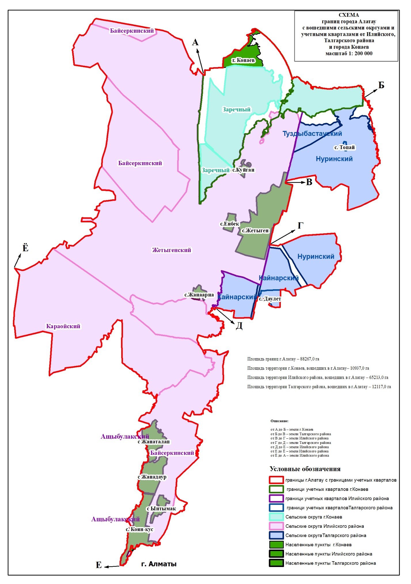 «Установить границы (черты) города Алатау включив в его черту части земель города Қонаев, Илийского и Талгарского районов общей площадью 88267,0086 гектаров», - говорится в проекте постановления маслихата и акимата Алматинской области на сайте «Открытые НПА».Согласно прилагаемой экспликации, у Конаева хотят забрать в пользу Алатау 10937,0052 га земель, у Илийского района – 65213,0004 га, а у Талгарского района – 12117,003 га. Напомним, 9 января президент Касым-Жомарт Токаев подписал указ о создании города Алатау. Территория нового города Алатау составляет 88 тысяч гектаров, что больше, чем площадь Алматы – 68200 га. Население Алатау составляет 52,7 тысяч человек. 10 января сообщалось, что Алатау (бывший Жетыген) станет частью специальной экономической зоны. Ранее сообщал об основных целях генплана. Из Алатау хотят сделать центр развлечений, туризма и экспортно-ориентированный торгово-логистический хаб. У жителей будут самые комфортные условия для жизни с устойчивой инфраструктурой. Алатау будет состоять из отдельных частей городской структуры, один из них – Green District. Это город, объединяющий казино-центр, экологические зоны и активный отдых. 30 мая сообщалось, что Алатау станет еще одним городом с казино в Казахстане. Сейчас в Казахстане разрешены азартные игры только в Конаеве и Бурабае.