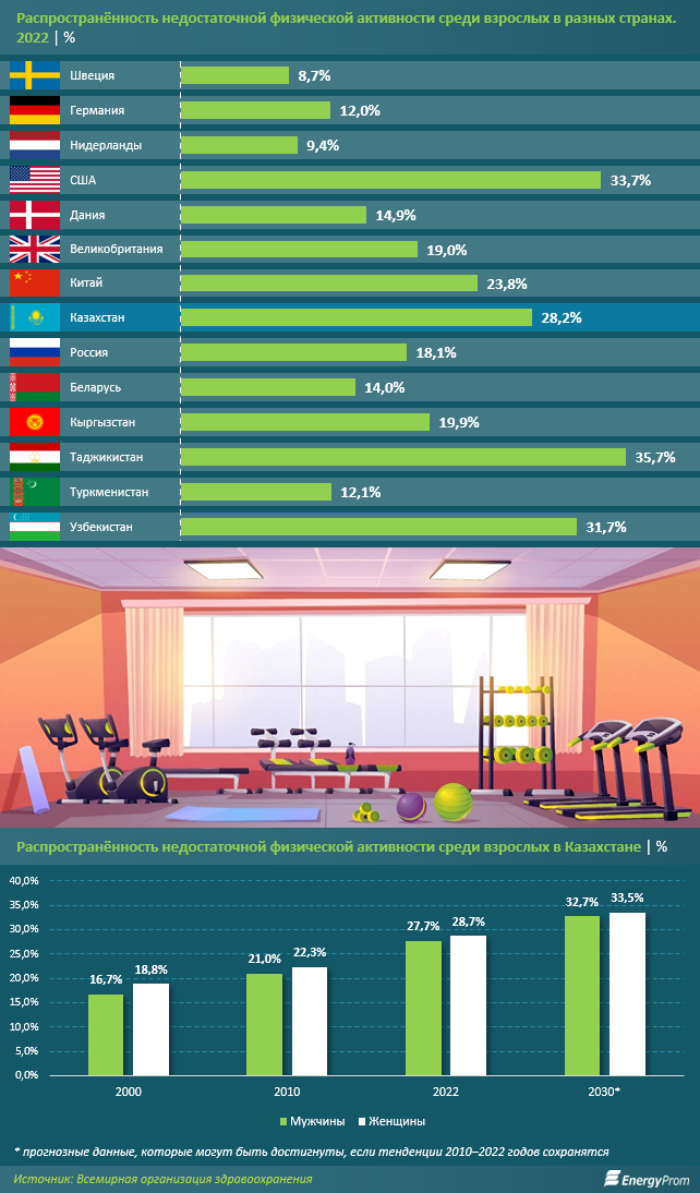 По мнению директора департамента ВОЗ по вопросам укрепления здоровья Рюдигера Креха, недостаток физической активности — скрытая угроза здоровью населения во всем мире и значимая причина повышения бремени хронических заболеваний. По оценкам специалистов ВОЗ, низкая физическая активность у взрослых повышает риск сердечно-сосудистых заболеваний (в частности, инфарктов и инсультов), диабета, деменции, а также онкологических болезней.