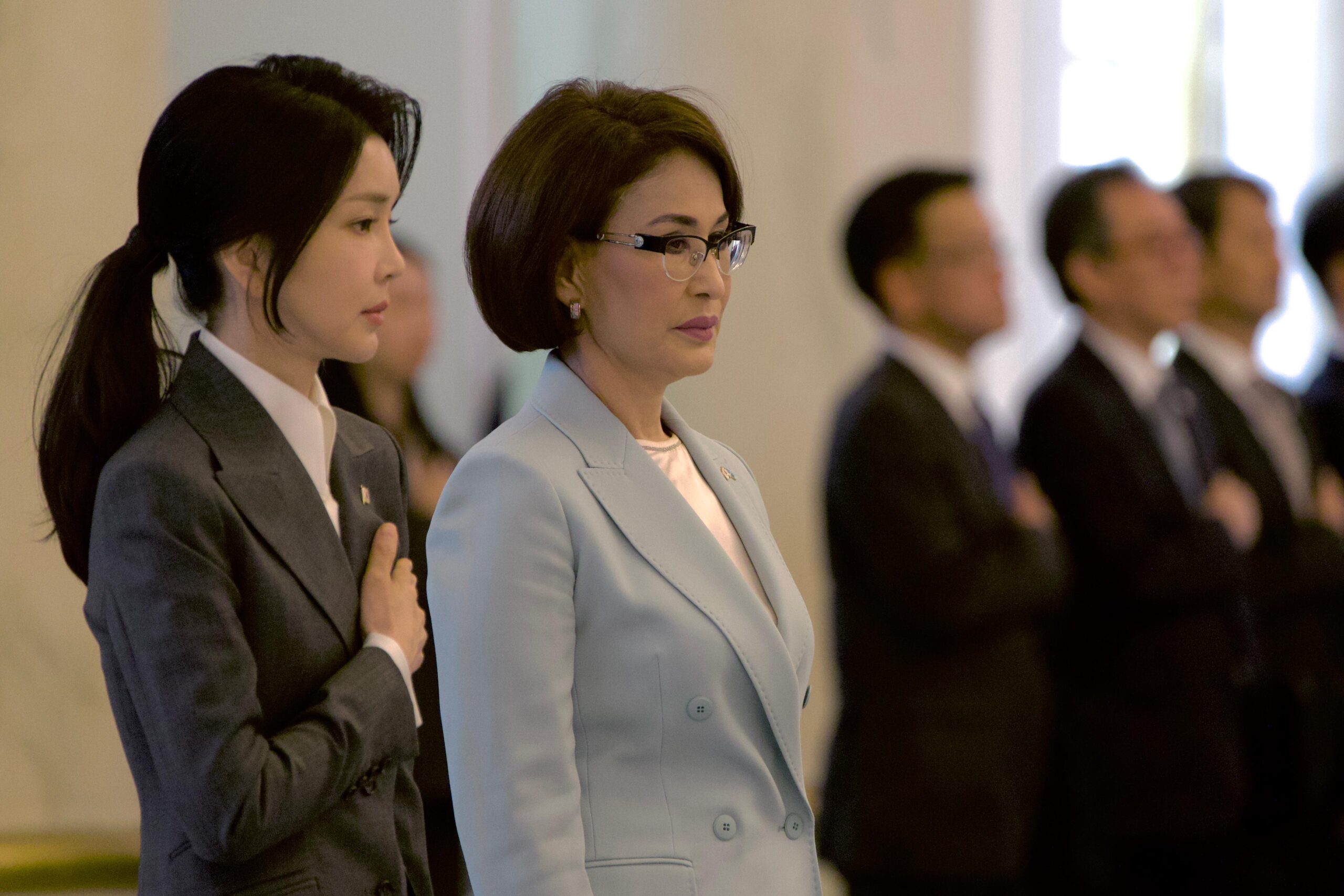 Первая леди Кореи Ким Кон Хи приехала в Казахстан. Она сопровождает своего мужа Юн Сок Ёля в Астане, сообщает Belles.kz.